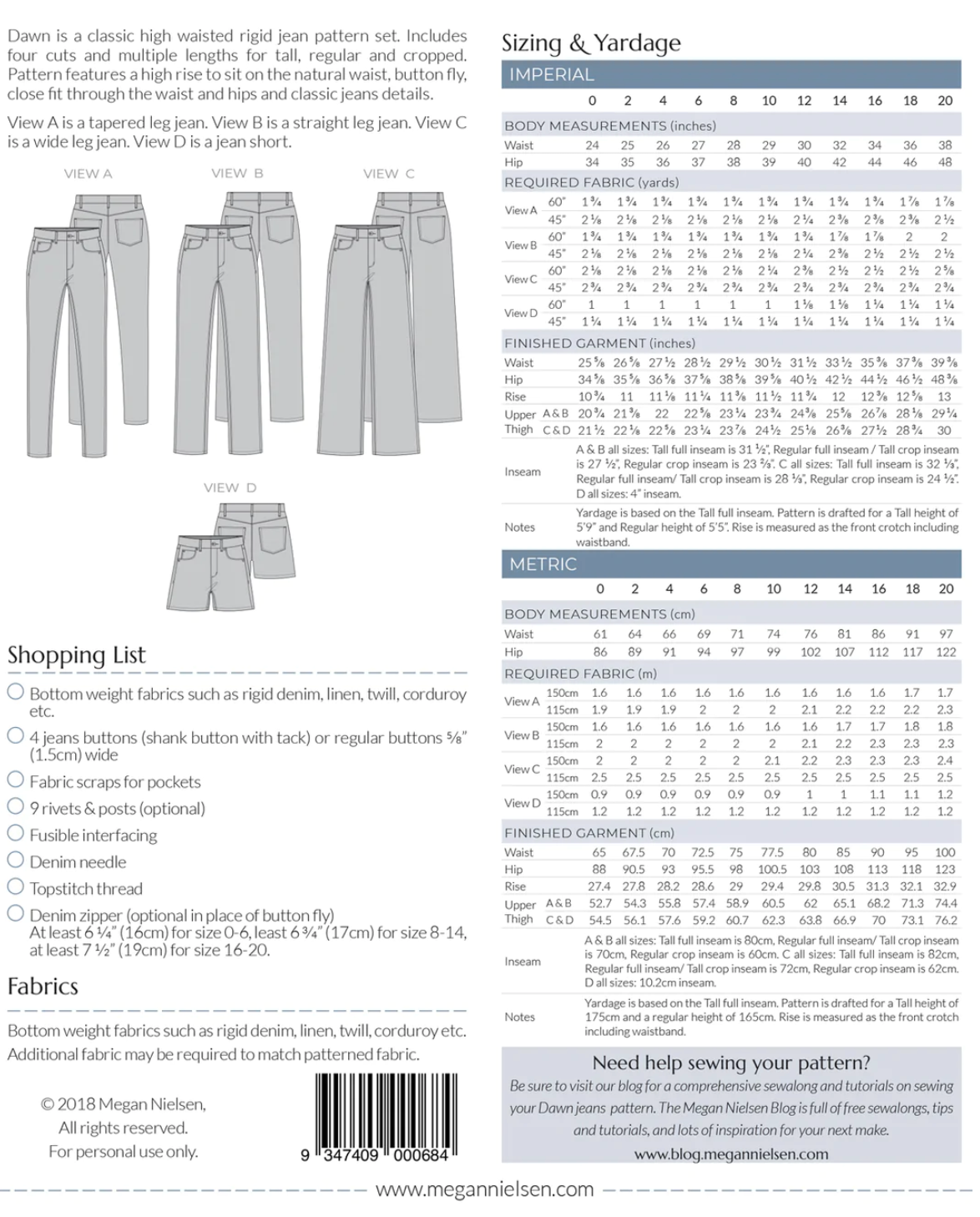 4 in 1 Dawn jeans - Paper pattern - MEGAN NIELSEN