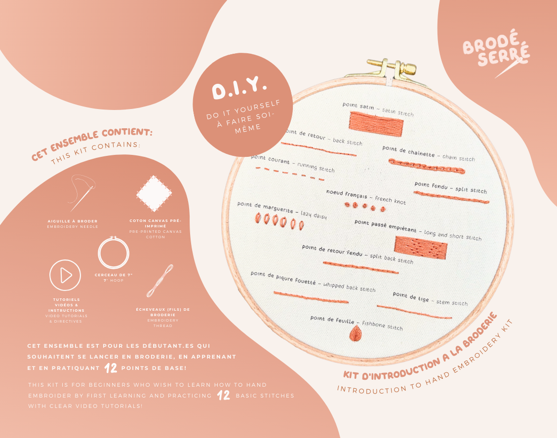 You've been asking me for a long time, and with the arrival of fall, I thought it was the perfect time to release this new DIY kit specially designed to learn and practice 12 basic embroidery stitches!