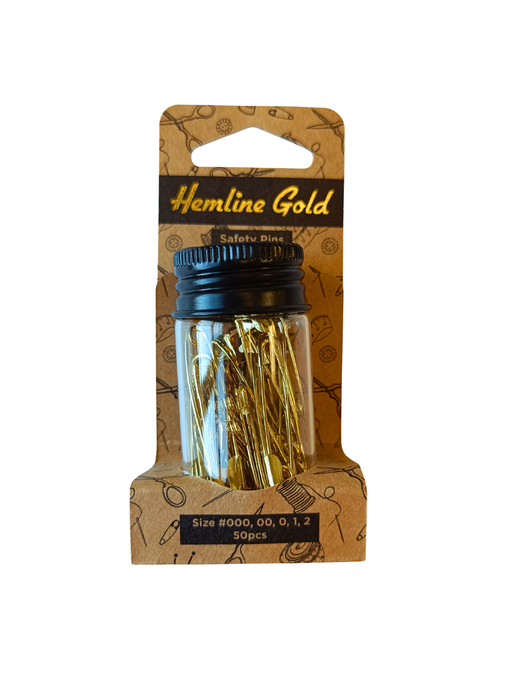 Assortment of 50 pins in different sizes: 10pcs 19mm, 10pcs 23mm, 10pcs 27mm, 10pcs 34mm, 10pcs 38mm