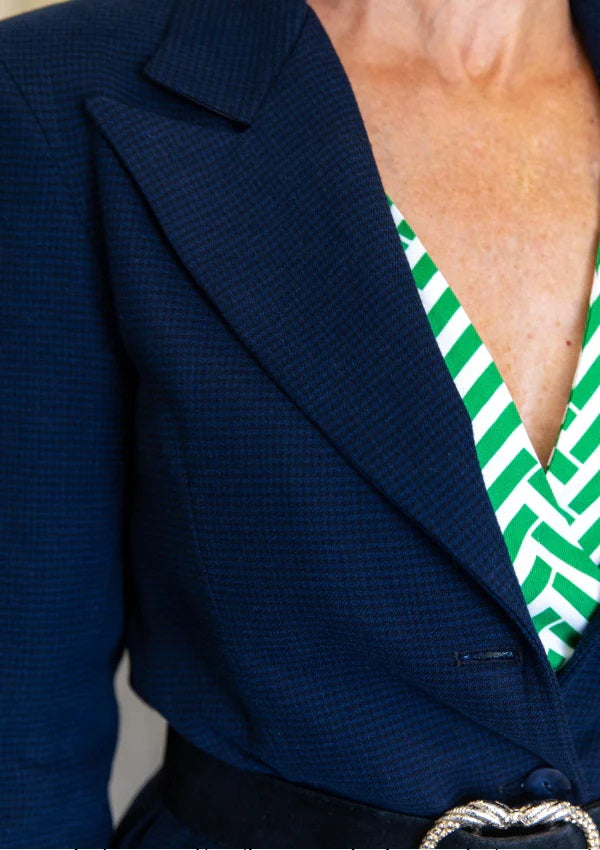 When a blazer is irresistible… Here is Manhattan! This jacket is definitely the centerpiece of the Empire State of Fauve collection: a fitted cut with inserts, with marked shoulders, a bold arrow collar, a length in tune with the times, perfect for wearing your blazer belted and the possibility of sewing a piped pocket with flap or a patch pocket with flap. And the finishes are impeccable right down to the end because your jacket is fully lined, with a secret pocket inside the garment. Terribly chic, right?!