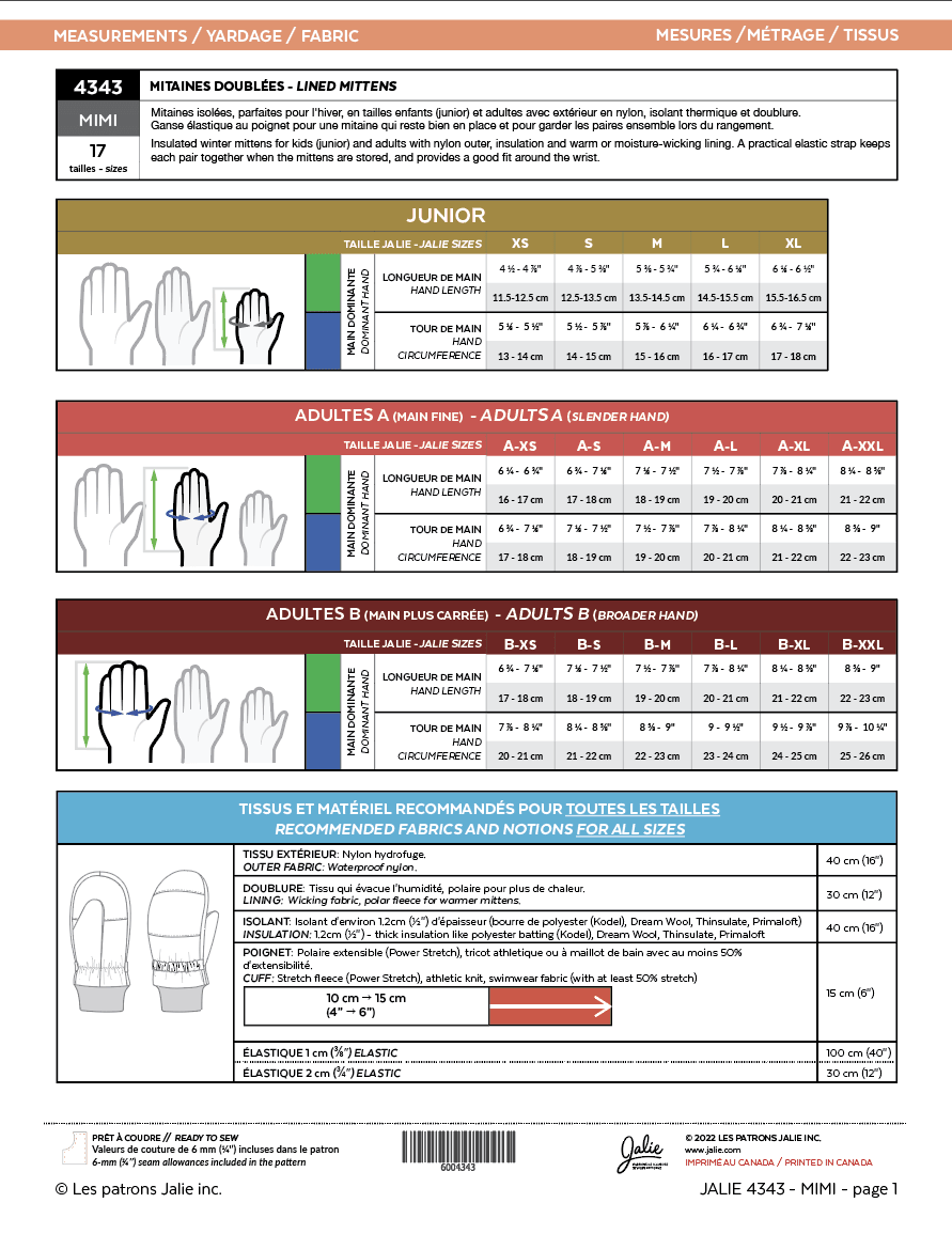 Insulated mittens - MIMI - 4343 | Paper pattern - Jalie