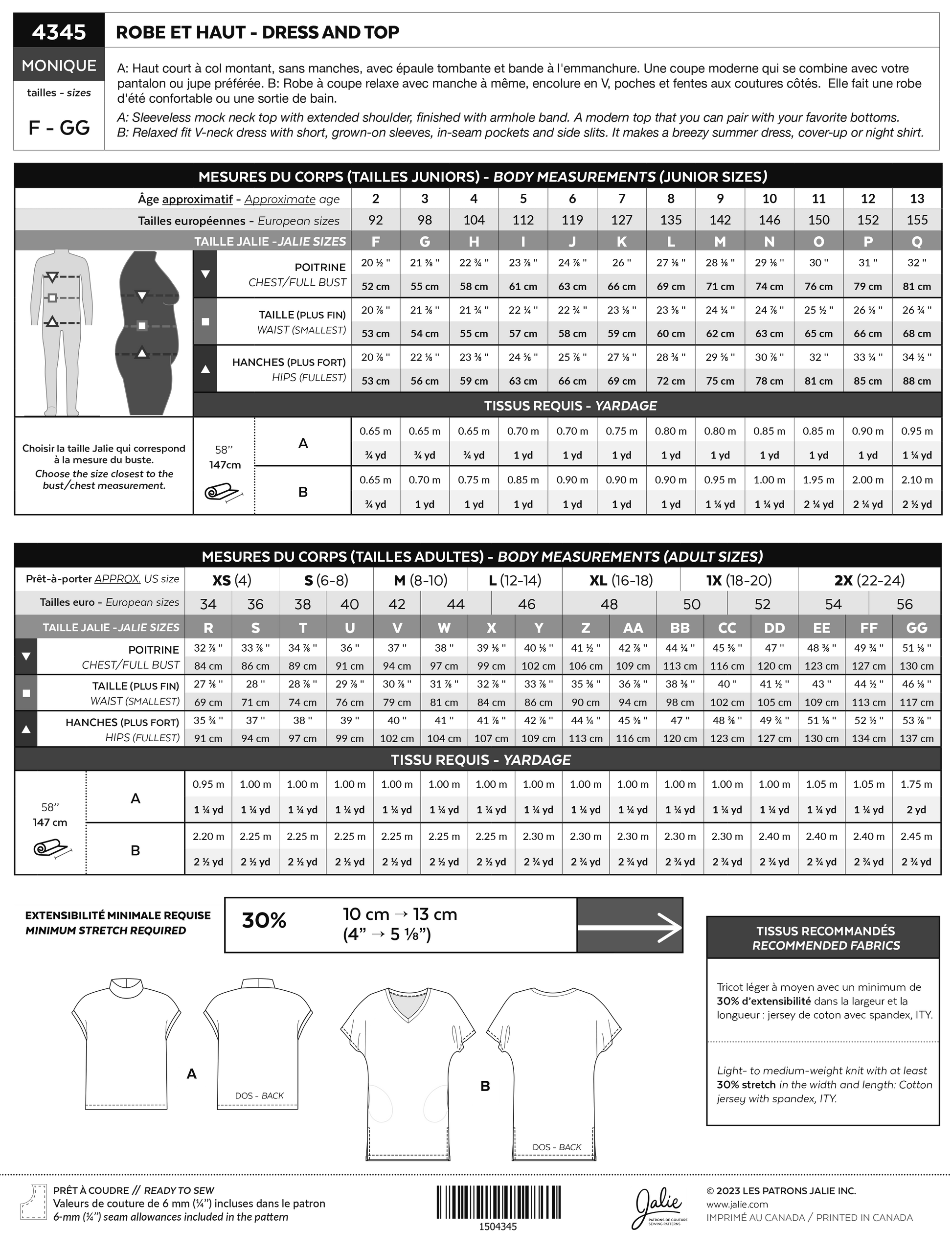 Dress and top - MONIQUE 4345 | Paper pattern - Jalie