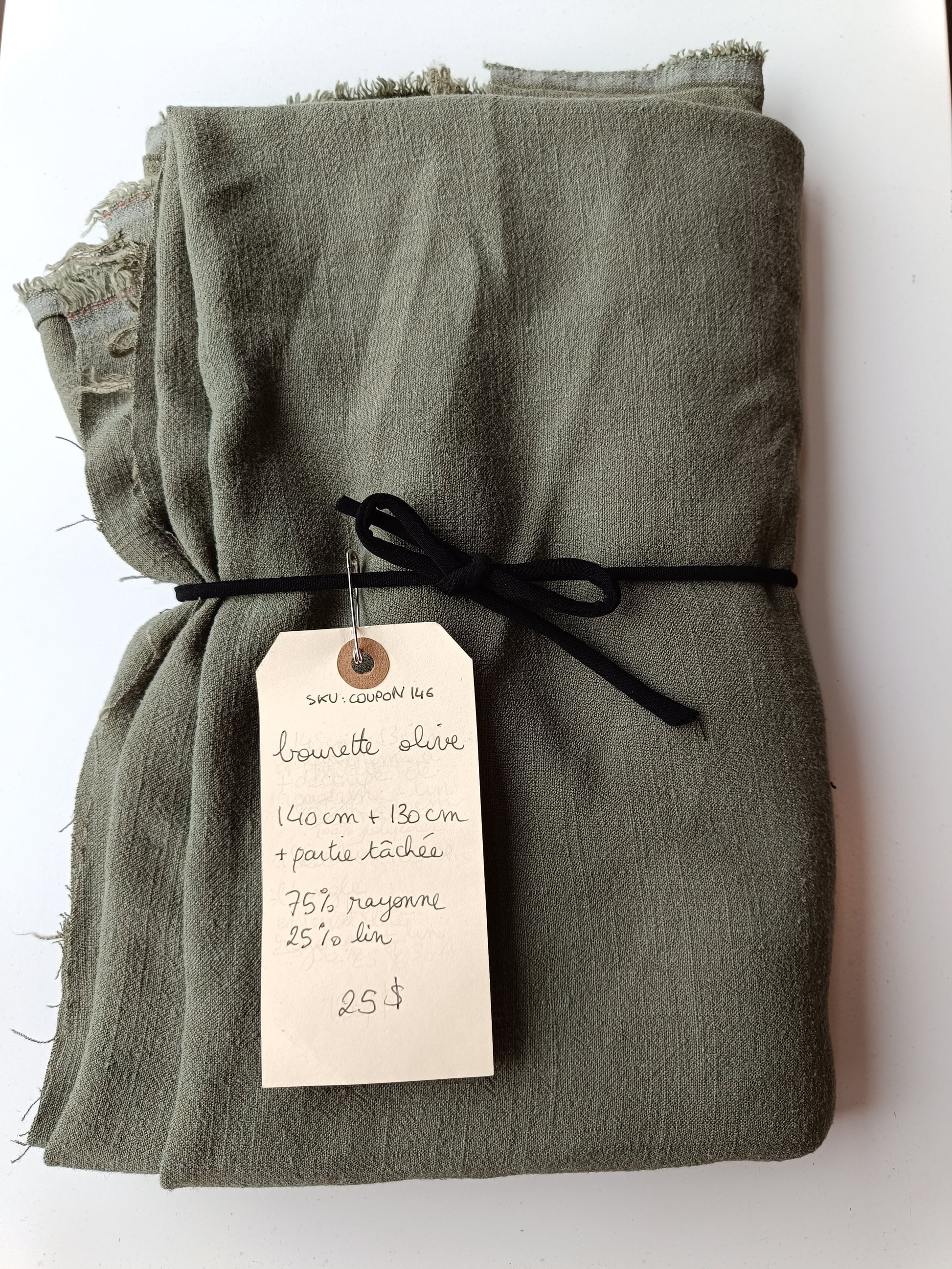 Coupon de tissu : les mesures et informations se trouvent sur la photo. Les trous et découpes aux extrémités ne sont pas calculés dans le métrage indiqué.