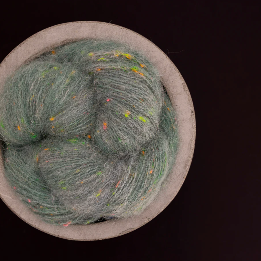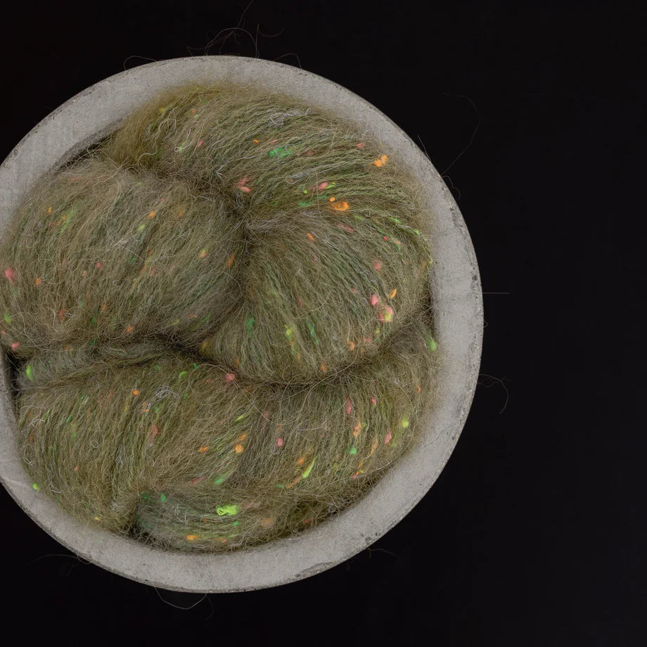 Plongez vos aiguilles dans un nuage de douceur avec notre laine fantaisie Confetto, "fluffy", avec un aspect très doux et duveteux. Une merveille teinte artisanalement, conçue pour celles et ceux qui aiment tricoter avec style.