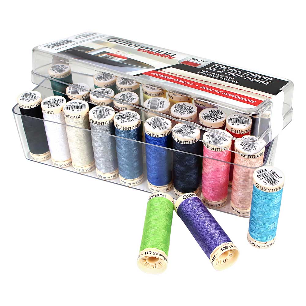 26 couleurs populaires de 100m de fil pour tout coudre dans une boîte de rangement en acrylique transparent réutilisable.