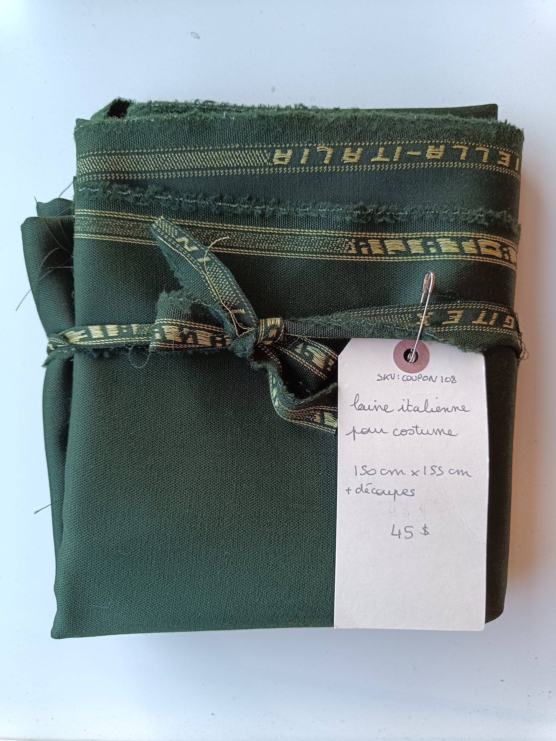 Coupon de tissu : les mesures et informations se trouvent sur la photo. Les trous et découpes aux extrémités ne sont pas calculés dans le métrage indiqué.