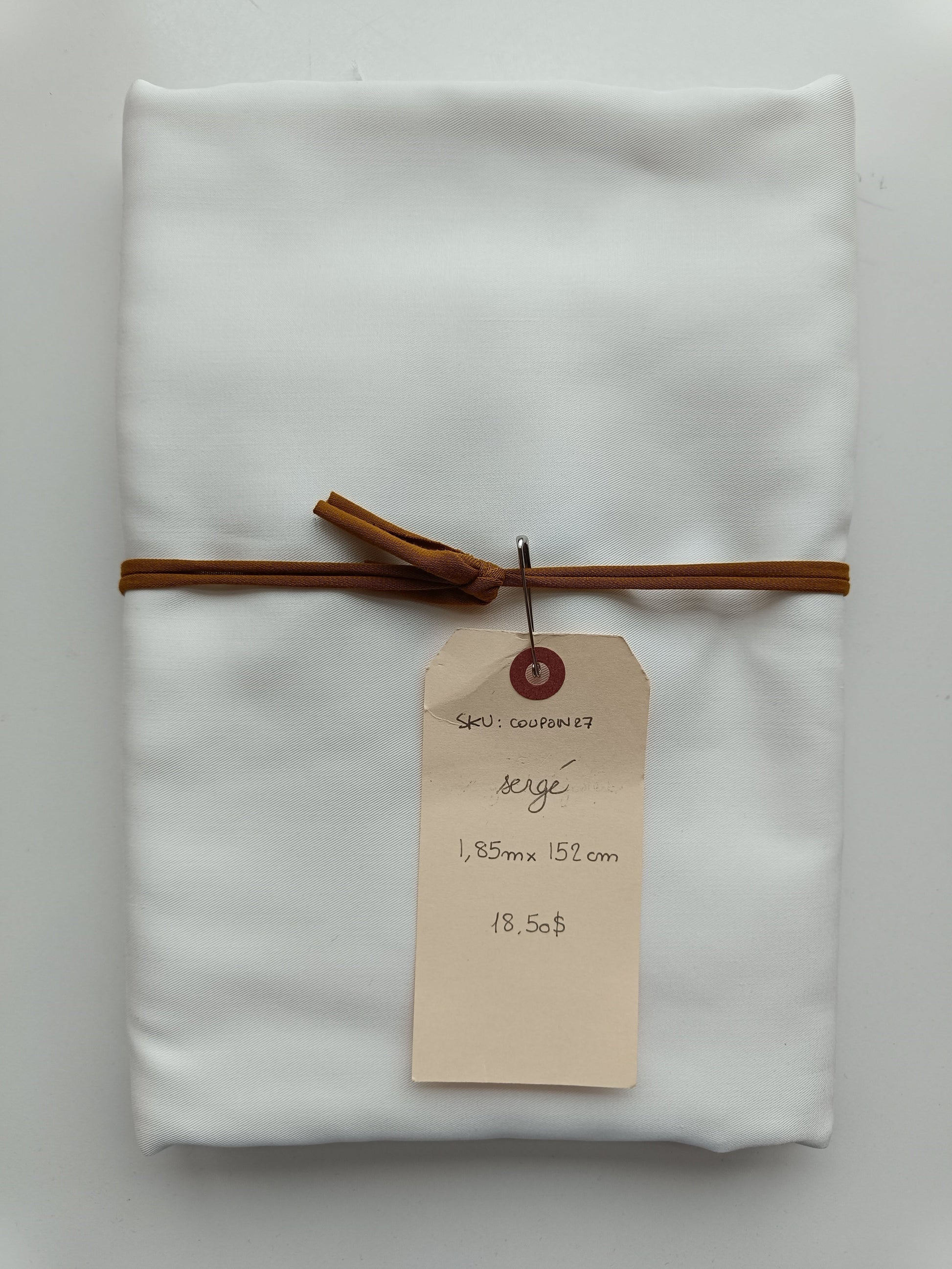 Coupon de tissu : les mesures et informations se trouvent sur la photo. Les trous et découpes aux extrémités ne sont pas calculés dans le métrage indiqué.